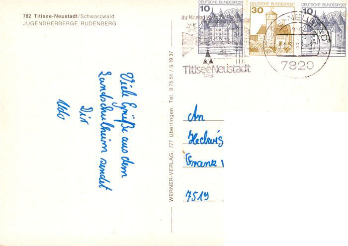73928794 alte Postkarte Titisee-Neustadt Jugendherberge Rudenberg postalisch gelaufen Erhaltung siehe scans [WerneD78] KatCode: 11110008315113