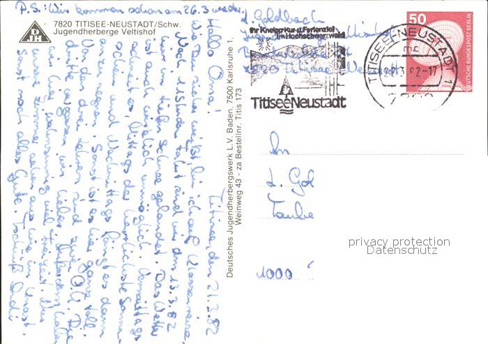 71993185 alte Postkarte Titisee-Neustadt Jugendherberge Veltishof postalisch gelaufen Erhaltung siehe scans KatCode: 11110008315113