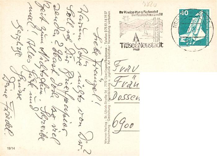 73928843 alte Postkarte Titisee-Neustadt Konzertpavillon Hochfirst Jugendherberge Park Kurbad Kirche Titisee Freibad postalisch gelaufen Erhaltung siehe scans [WerneD78] KatCode: 11110008315113