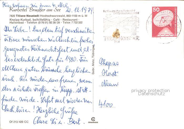 71928457 alte Postkarte Titisee-Neustadt Kurhotel Brugger am See postalisch gelaufen Erhaltung siehe scans KatCode: 11110008315113