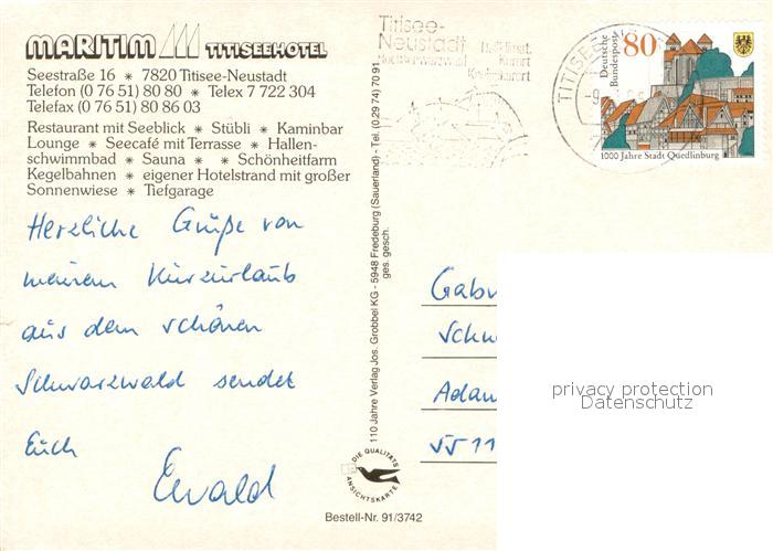 73666818 alte Postkarte Titisee-Neustadt Maritim Titiseehotel postalisch gelaufen Erhaltung siehe scans [WerneD78] KatCode: 11110008315113