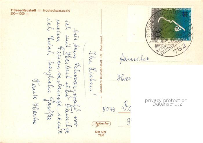 73030289 alte Postkarte Titisee-Neustadt Panorama Kirche Schwimmbad Minigolf Strassenpartie Titisee postalisch gelaufen Erhaltung siehe scans [WerneD78] KatCode: 11110008315113