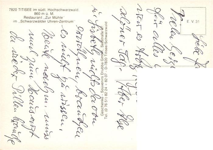 73929479 alte Postkarte Titisee-Neustadt Restaurant Zur Muehle im Schwarzwaelder Uhrenzentrum postalisch gelaufen Erhaltung siehe scans [WerneD78] KatCode: 11110008315113