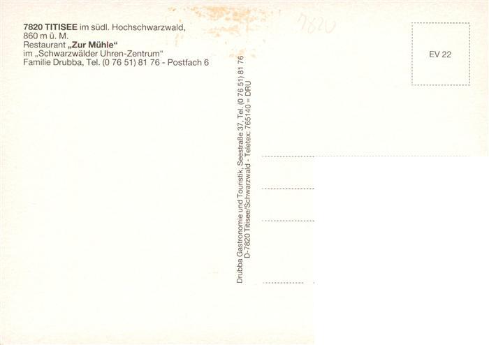 73929035 Titisee-Neustadt Restaurant Zur Muehle im Schwarzwaelder Uhrenzentrum postalisch nicht gelaufen Erhaltung siehe scans [WerneD78] KatCode: 11110008315113