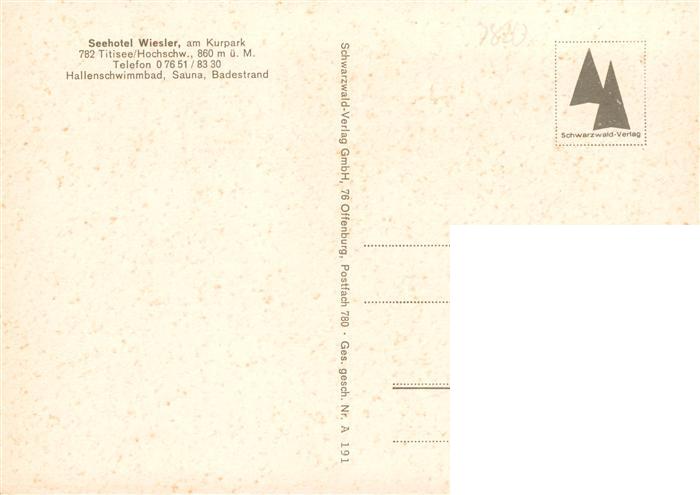 73928802 Titisee-Neustadt Seehotel Wiesler Seeblick postalisch nicht gelaufen Erhaltung siehe scans [WerneD78] KatCode: 11110008315113