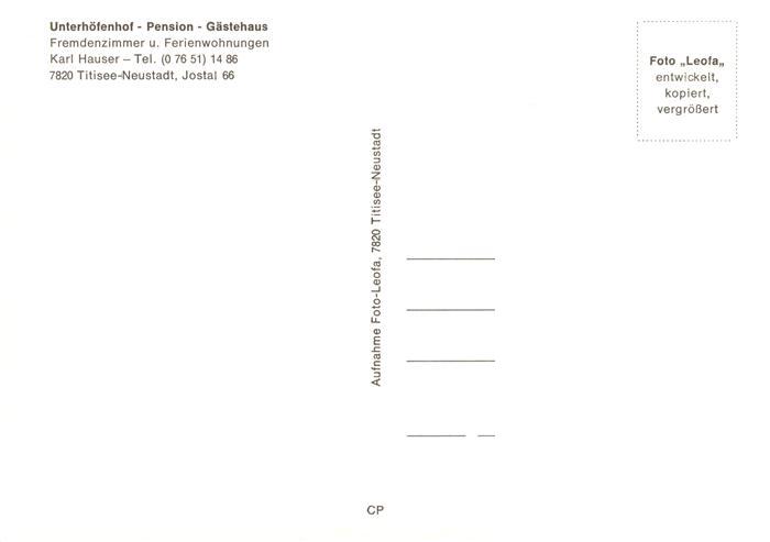 73880594 Titisee-Neustadt Unterhoefenhof Pension Gaestehaus postalisch nicht gelaufen Erhaltung siehe scans [WerneD78] KatCode: 11110008315113