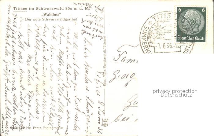 31821475 alte Postkarte Titisee-Neustadt Waldlust-Gartenrestaurant postalisch gelaufen KatCode: 11110008315113