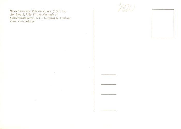 73929498 Titisee-Neustadt Wanderheim Berghaeusle postalisch nicht gelaufen Erhaltung siehe scans [WerneD78] KatCode: 11110008315113