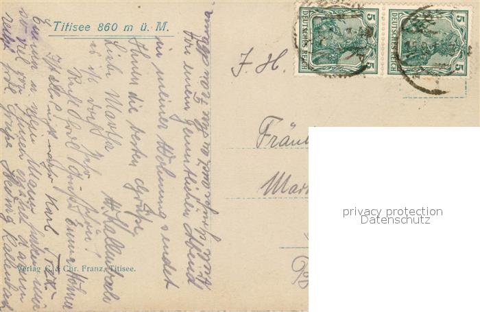 73508451 alte Postkarte Titisee Panorma postalisch gelaufen Erhaltung siehe scans [KathaD81] KatCode: 11110008315113