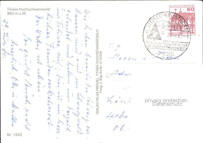 71859890 alte Postkarte TITISEE Schwarzwald BW postalisch gelaufen Erhaltung siehe scans KatCode: 11110008315113