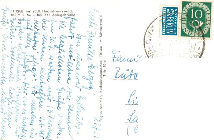 73909742 TITISEE Schwarzwald BW Anlegebruecke postalisch gelaufen Erhaltung siehe scans [FriedD77] alte Postkarte Frie Katcode 11110008315113