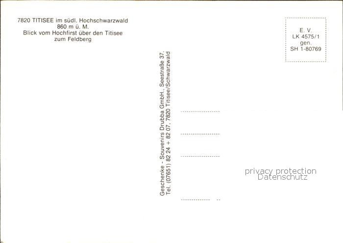 72529242 TITISEE Schwarzwald BW Blick vom Hochfirst ueber Titisee zum Feldberg postalisch nicht gelaufen Erhaltung siehe scans KatCode: 11110008315113
