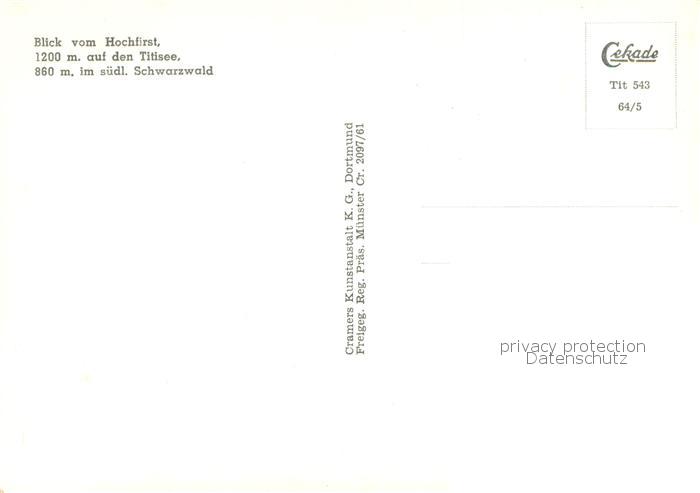 73754867 TITISEE Schwarzwald BW Blick vom Hochfirst postalisch nicht gelaufen Erhaltung siehe scans [WerneD78] Wern Katcode 11110008315113