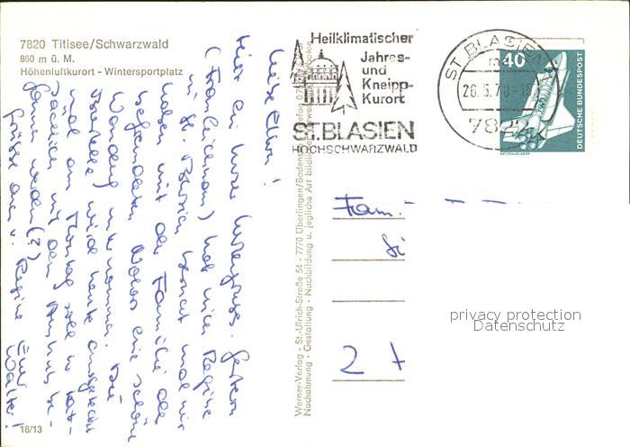 72039907 alte Postkarte TITISEE Schwarzwald BW Campingplatz Hoehenluftkurort Wintersportplatz Schwarzwald postalisch gelaufen Erhaltung siehe scans KatCode: 11110008315113