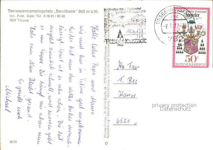 71977768 alte Postkarte TITISEE Schwarzwald BW Campingplatz Sandbank postalisch gelaufen Erhaltung siehe scans KatCode: 11110008315113