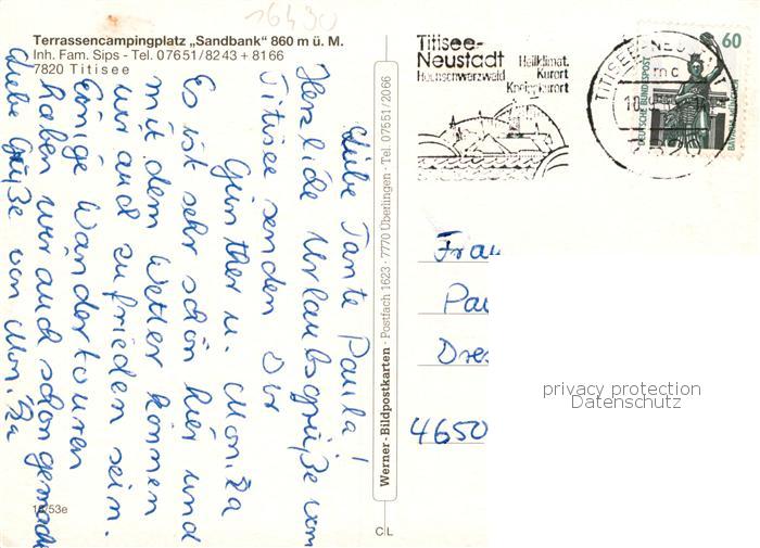 73797136 TITISEE Schwarzwald BW Campingplatz Sandbank Gaststaette Restaurant See Panorama postalisch gelaufen Erhaltung siehe scans [WerneD78] alte Postkarte Wern Katcode 11110008315113
