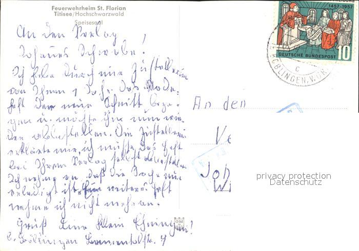 72545257 alte Postkarte TITISEE Schwarzwald BW Feuerwehrheim Sankt Florian postalisch gelaufen Erhaltung siehe scans [KathaD79 kv011box] KatCode: 11110008315113