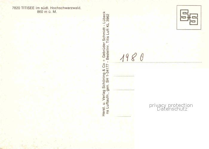 72665539 TITISEE Schwarzwald BW Fliegeraufnahme postalisch nicht gelaufen Erhaltung siehe scans [AndreD76] KatCode: 11110008315113