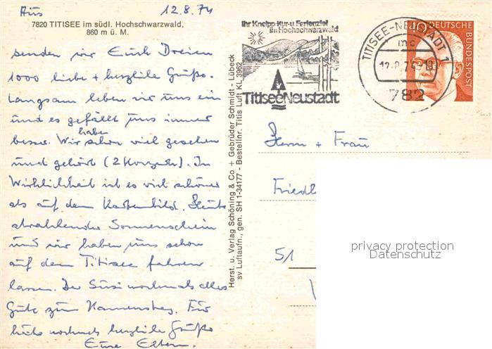 72845334 alte Postkarte TITISEE Schwarzwald BW Fliegeraufnahme postalisch gelaufen Erhaltung siehe scans [NatalD47] KatCode: 11110008315113