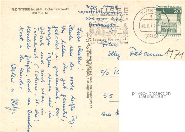 73766928 TITISEE Schwarzwald BW Fliegeraufnahme postalisch gelaufen Erhaltung siehe scans [FriedD77] alte Postkarte Frie Katcode 11110008315113