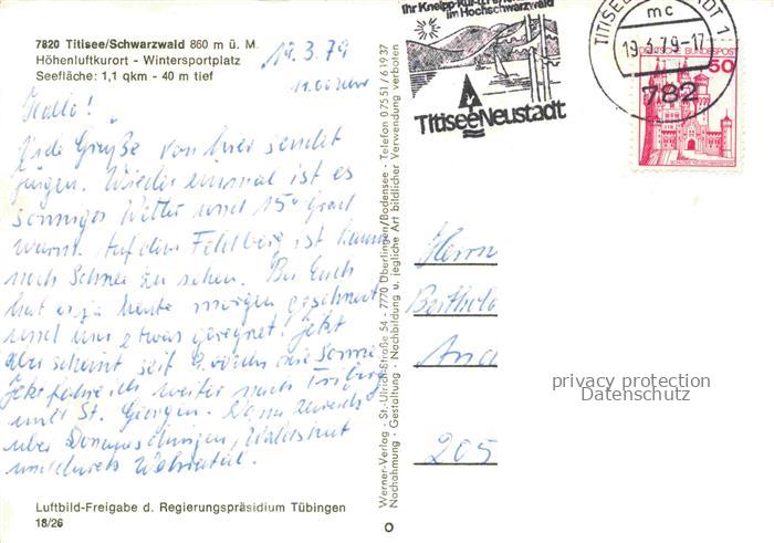 74085769 TITISEE Schwarzwald BW Fliegeraufnahme postalisch gelaufen Erhaltung siehe scans [WerneD78] alte Postkarte Wern Katcode 11110008315113