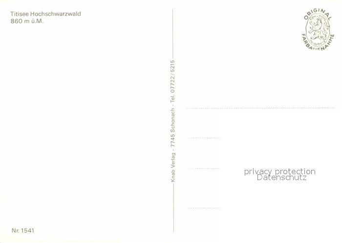 72683901 TITISEE Schwarzwald BW Fliegeraufnahme postalisch nicht gelaufen Erhaltung siehe scans [WerneD78] KatCode: 11110008315113