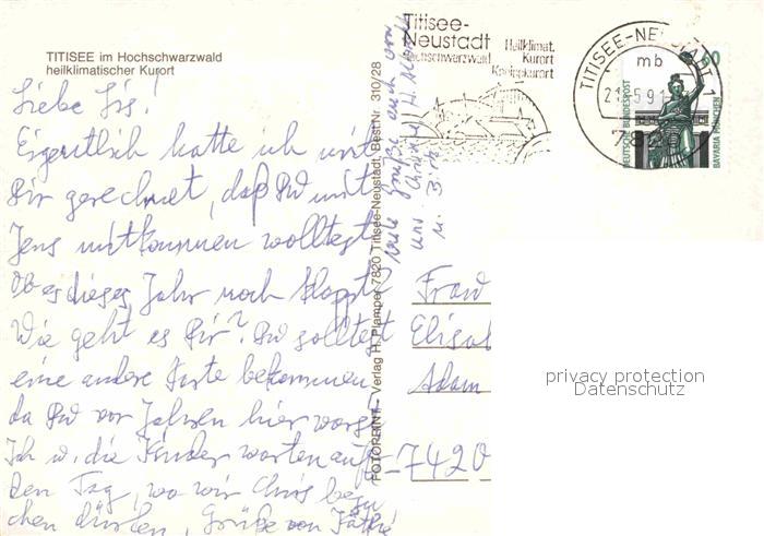 72856436 alte Postkarte TITISEE Schwarzwald BW Fliegeraufnahme Bootsanlegestelle Segelpartie postalisch gelaufen Erhaltung siehe scans [WerneD78] KatCode: 11110008315113