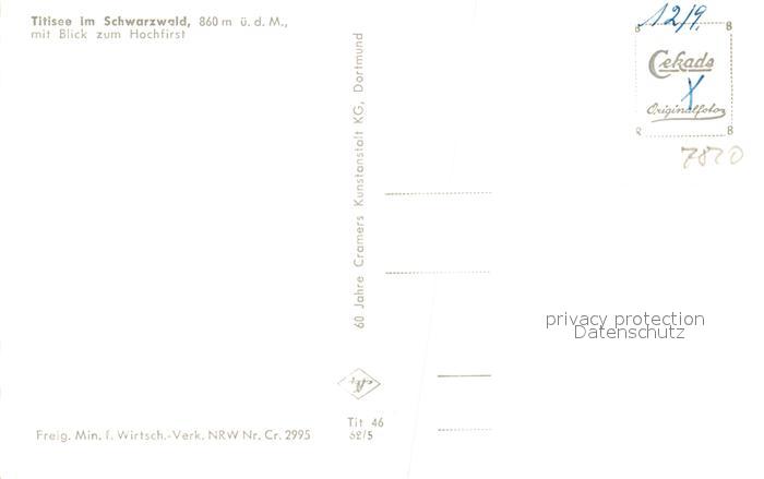 43490224 TITISEE Schwarzwald BW Fliegeraufnahme Neustat Hochfirst Lenzkirch postalisch nicht gelaufen Erhaltung siehe scans [KathaD81] Kath Katcode 11110008315113