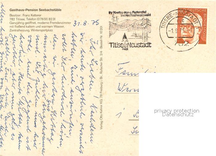 73666851 TITISEE Schwarzwald BW Gasthaus Pension Seebachstueble Gaststube Bootsliegeplatz postalisch gelaufen Erhaltung siehe scans [WerneD78] alte Postkarte Wern Katcode 11110008315113