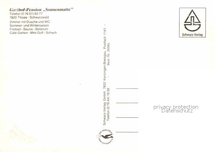72682106 TITISEE Schwarzwald BW Gasthof Pension Sonnenmatte Freibad postalisch nicht gelaufen Erhaltung siehe scans [WerneD78] KatCode: 11110008315113