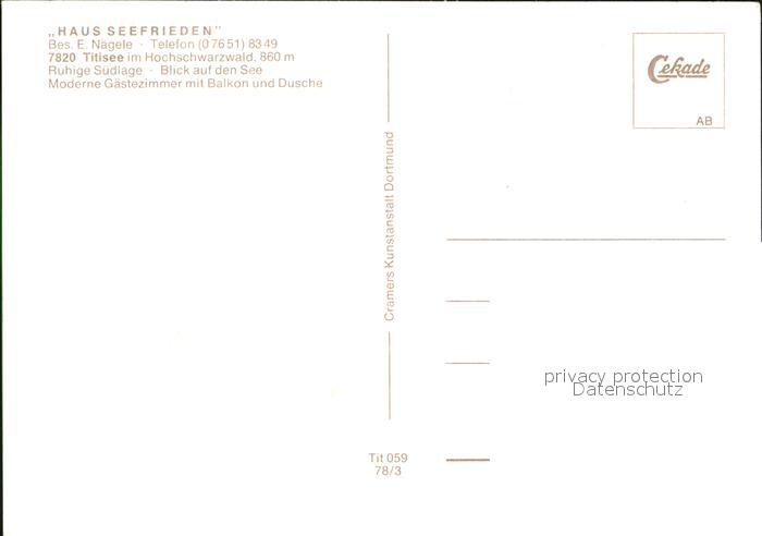 72492332 TITISEE Schwarzwald BW Haus Seefrieden postalisch nicht gelaufen Erhaltung siehe scans KatCode: 11110008315113