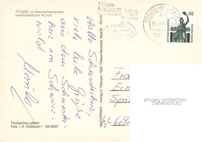 73688736 TITISEE Schwarzwald BW Heilklimatischer Kurort Winter im Schwarzwald Fliegeraufnahme postalisch gelaufen Erhaltung siehe scans [FriedD77] alte Postkarte Frie Katcode 11110008315113