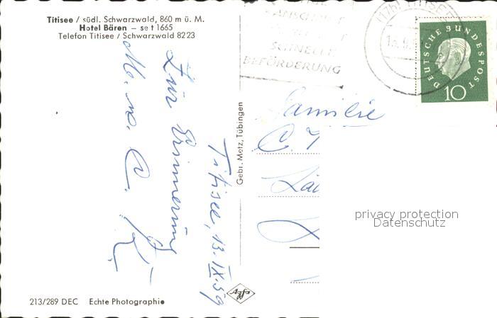 41687869 TITISEE Schwarzwald BW Hotel Baeren postalisch gelaufen Erhaltung siehe scans Alte Ansichtskarte Postkarte alte Postkarte Nata Katcode 11110008315113
