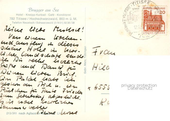 73788530 TITISEE Schwarzwald BW Hotel Brugger am See Panorama postalisch gelaufen Erhaltung siehe scans [WerneD78] alte Postkarte Wern Katcode 11110008315113