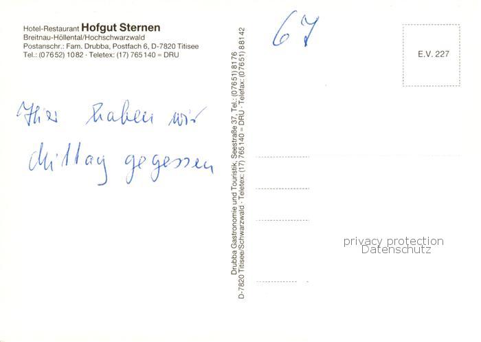 73845068 TITISEE Schwarzwald BW Hotel Restaurant Hofgut Sternen postalisch nicht gelaufen Erhaltung siehe scans [WerneD78] Wern Katcode 11110008315113