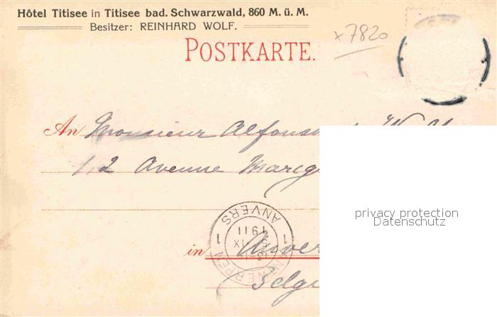 42883282 alte Postkarte TITISEE Schwarzwald BW Hotel Titisee postalisch gelaufen Erhaltung siehe scans [NatalD47] KatCode: 11110008315113