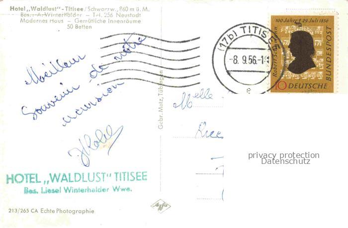 74104382 alte Postkarte TITISEE Schwarzwald BW Hotel Waldlust postalisch gelaufen Erhaltung siehe scans [FriedD77] KatCode: 11110008315113