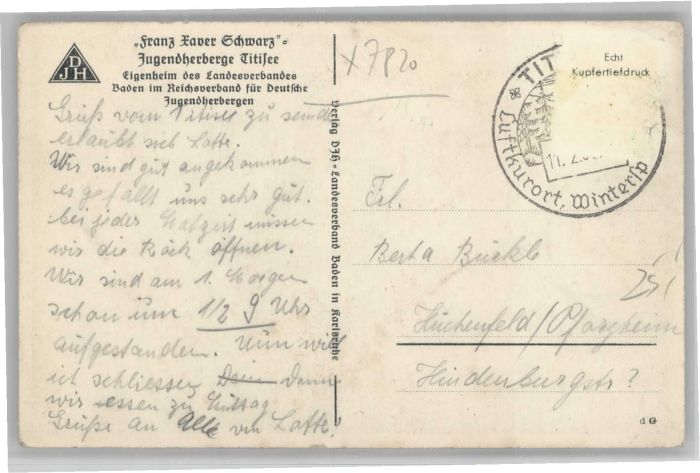 40729698 TITISEE Schwarzwald BW Jugendherberge Franz Xaver Schwarz postalisch gelaufen Alte Ansichtskarte Postkarte alte Postkarte Katcode 11110008315113
