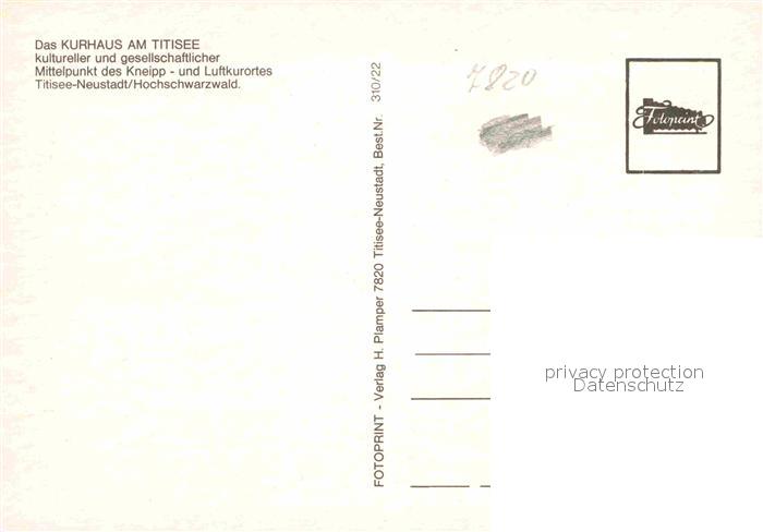 72798827 TITISEE Schwarzwald BW Kurhaus am Titisee Restaurant Panorama Schwarzwald postalisch nicht gelaufen Erhaltung siehe scans [FriedD77] KatCode: 11110008315113