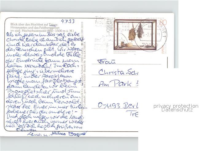 71903596 alte Postkarte TITISEE Schwarzwald BW Panorama Blick ueber den Hochfirst Schwarzwald Fliegeraufnahme postalisch gelaufen Erhaltung siehe scans KatCode: 11110008315113