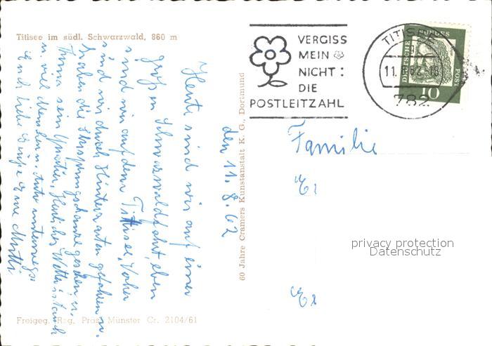 72426941 alte Postkarte TITISEE Schwarzwald BW Panorama Schwarzwald Fliegeraufnahme postalisch gelaufen Erhaltung siehe scans KatCode: 11110008315113