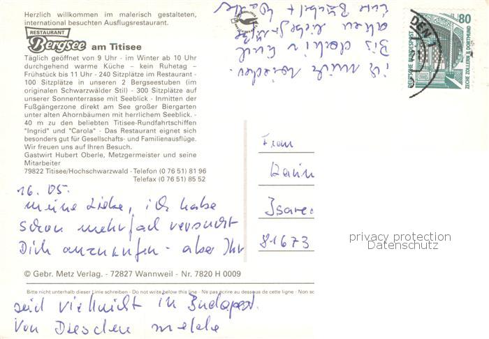 73778955 TITISEE Schwarzwald BW Restaurant Bergsee Gastraeume Freiterrasse Panorama postalisch gelaufen Erhaltung siehe scans [WerneD78] alte Postkarte Wern Katcode 11110008315113