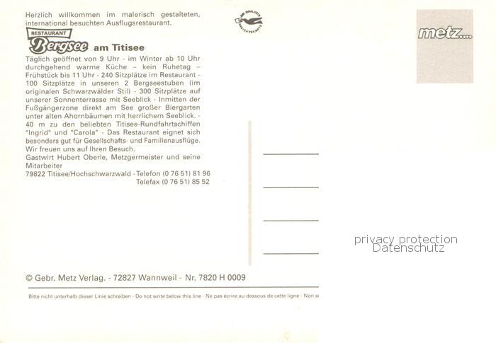73776878 TITISEE Schwarzwald BW Restaurant Bergsee Gastraeume Terrasse Panorama postalisch nicht gelaufen Erhaltung siehe scans [WerneD78] Wern Katcode 11110008315113