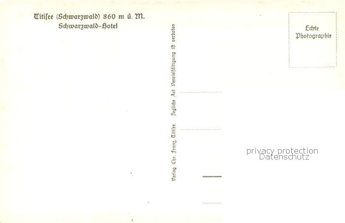 73762600 TITISEE Schwarzwald BW Schwarzwald Hotel postalisch nicht gelaufen Erhaltung siehe scans [WerneD78] Wern Katcode 11110008315113