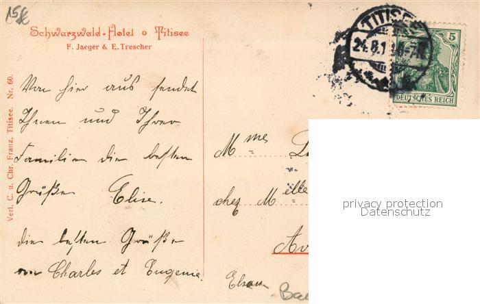 43491576 TITISEE Schwarzwald BW Schwarzwaldhotel postalisch gelaufen Erhaltung siehe scans [KathaD81] alte Postkarte Kath Katcode 11110008315113