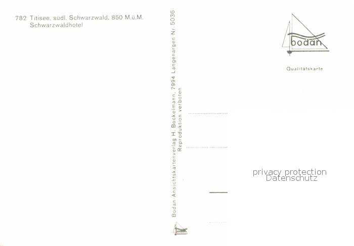 72697753 TITISEE Schwarzwald BW Schwarzwaldhotel Segelboot postalisch nicht gelaufen Erhaltung siehe scans [KathaD79] KatCode: 11110008315113