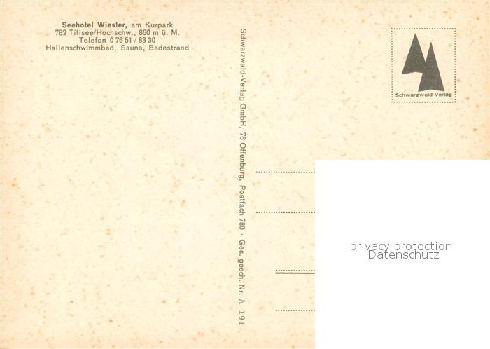 73718006 TITISEE Schwarzwald BW Seehotel Wiesler Gaststube postalisch nicht gelaufen Erhaltung siehe scans [WerneD78] Wern Katcode 11110008315113