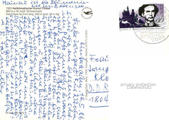 72724991 alte Postkarte TITISEE Schwarzwald BW Seepartie postalisch gelaufen Erhaltung siehe scans [LiesaD40] KatCode: 11110008315113