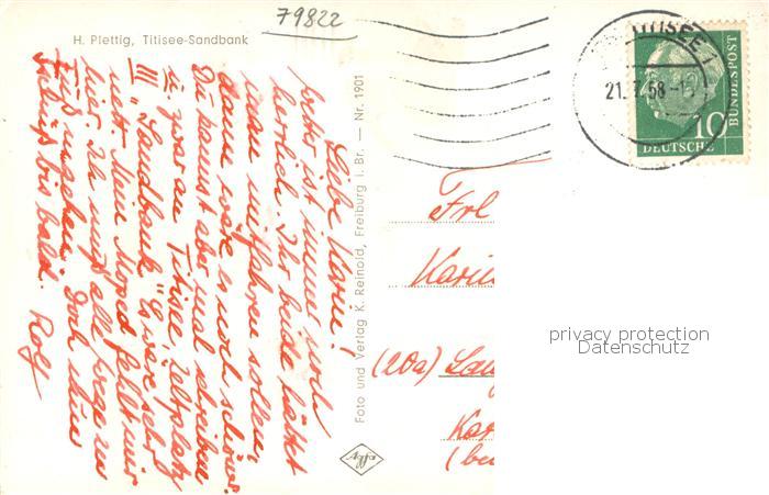 73762334 TITISEE Schwarzwald BW Zeltplatz Sandbank Seepanorama postalisch gelaufen Erhaltung siehe scans [FriedD77] alte Postkarte Frie Katcode 11110008315113