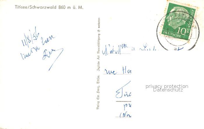 72937351 alte Postkarte Titisee und Umgebung Schwarzwald aus der Vogelperspektive postalisch gelaufen Reliefkarte Erhaltung siehe scans [FriedD77] KatCode: 11110008315113